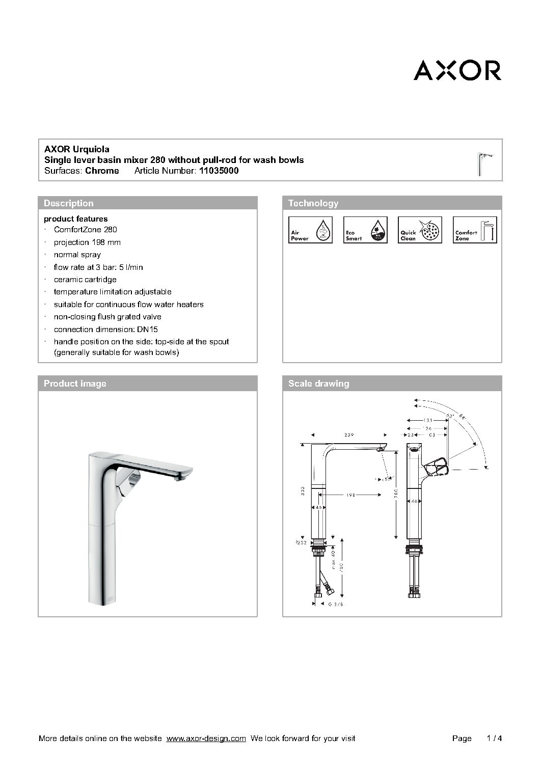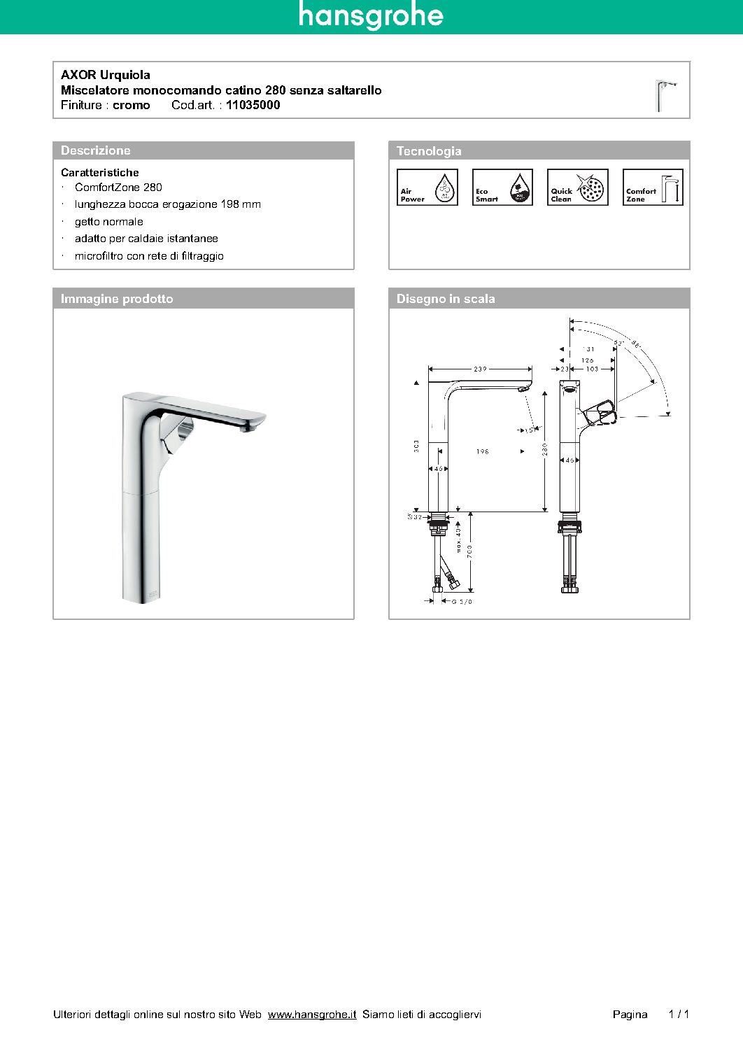 - lunghezza bocca erogazione 198 mm