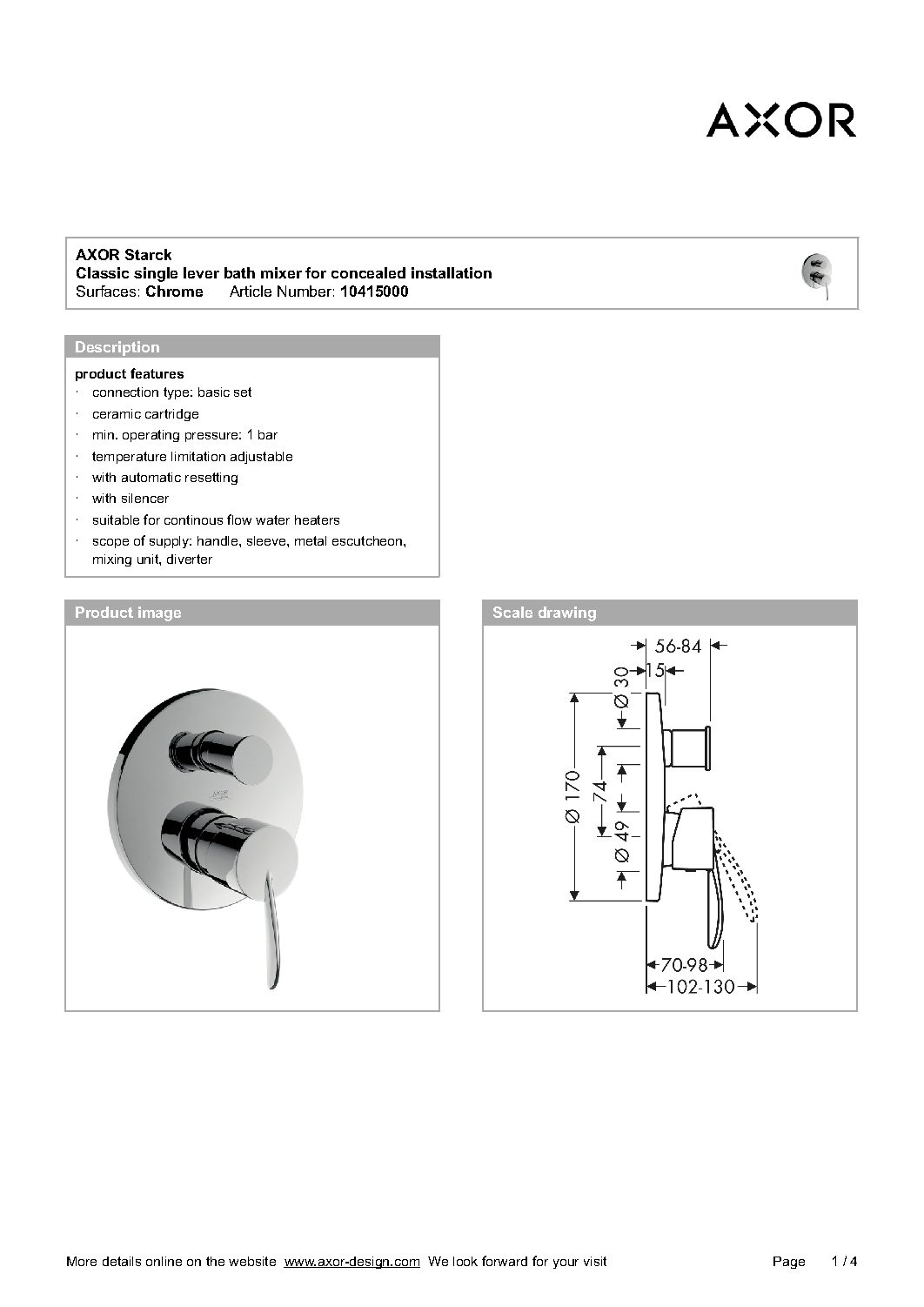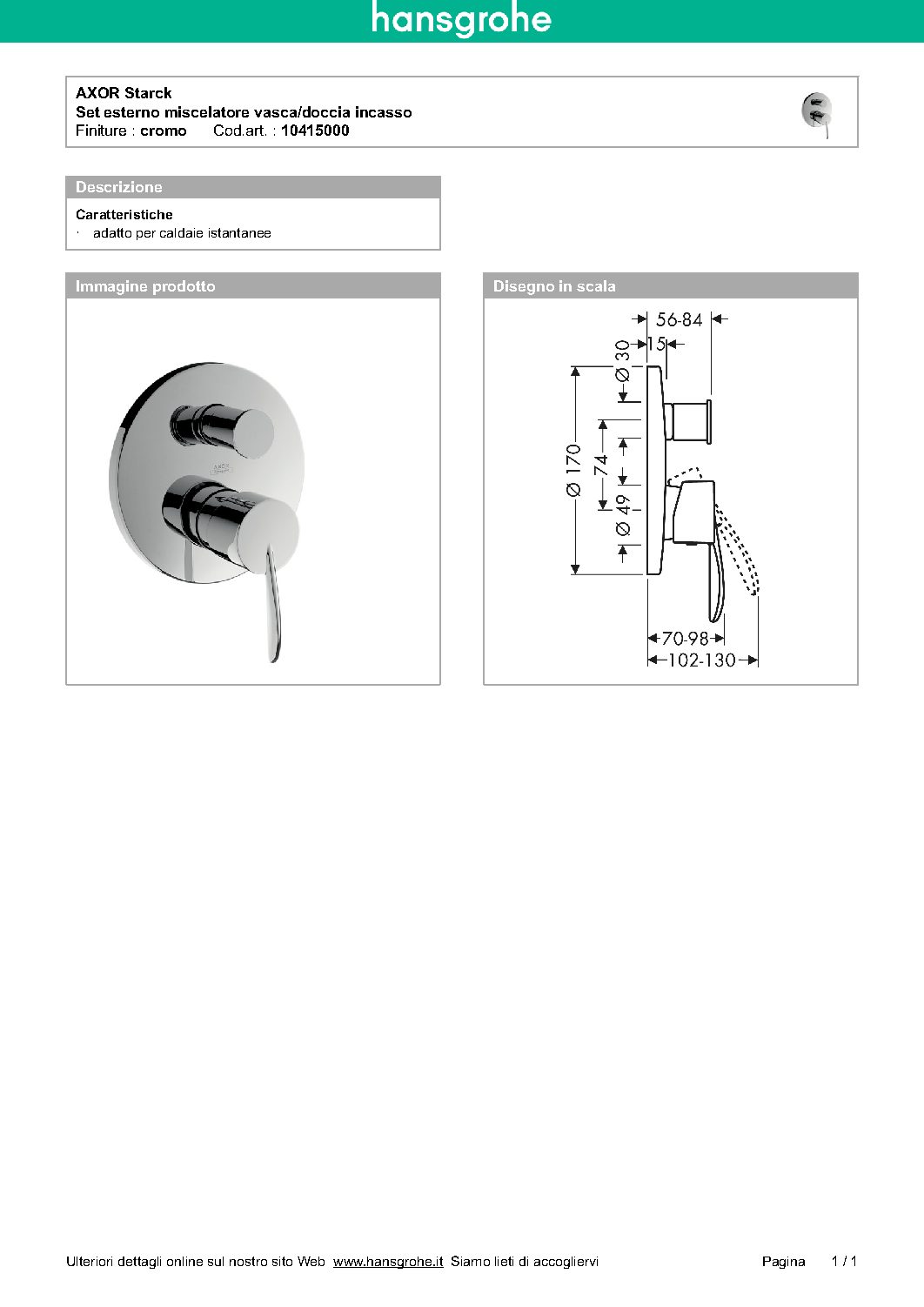• scope of supply: handle, sleeve, metal escutcheon, mixing unit, diverter
