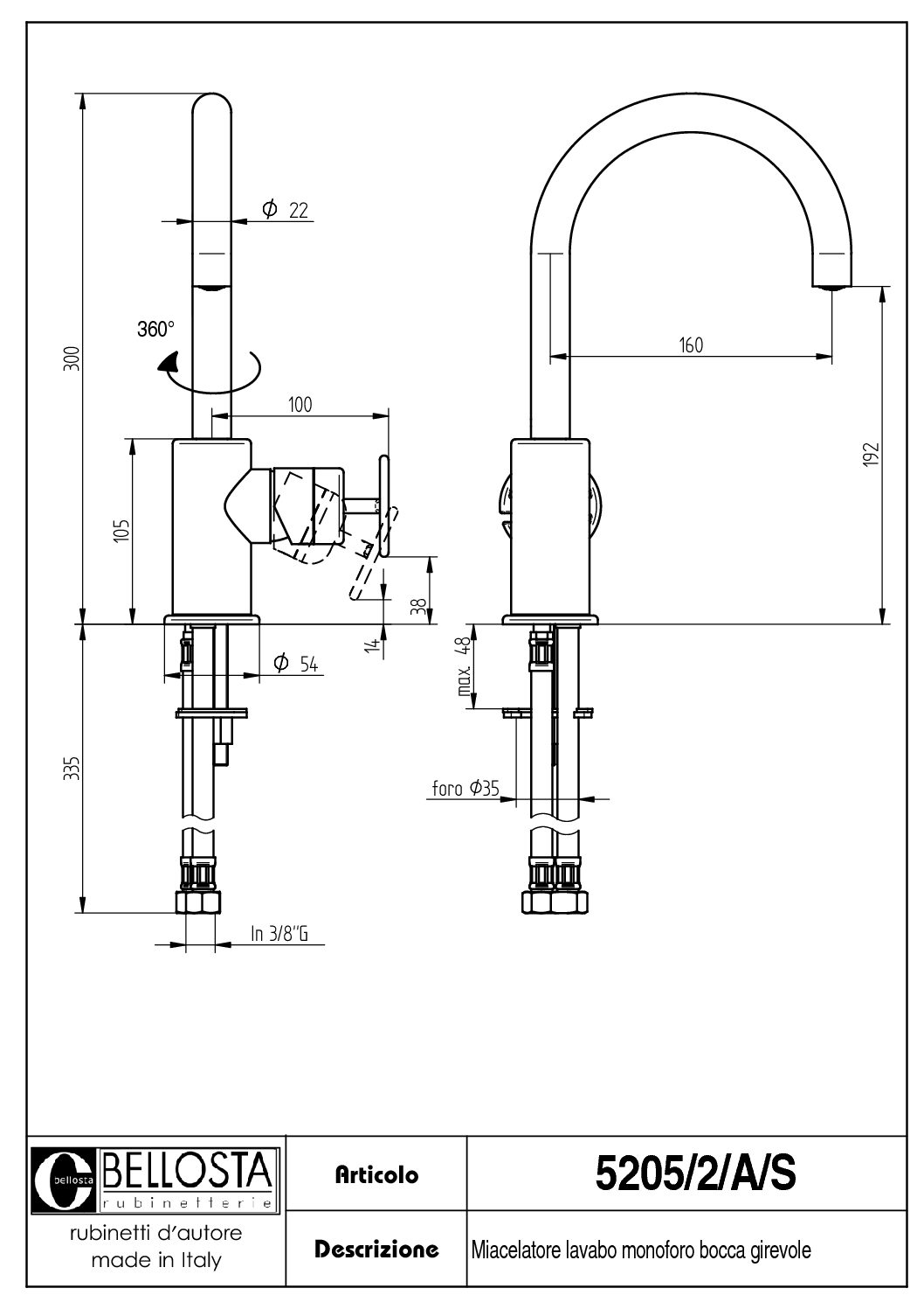 MISCELATORE LAVABO MONOFORO BOCCA GIREVOLE 5205/2/A/S
