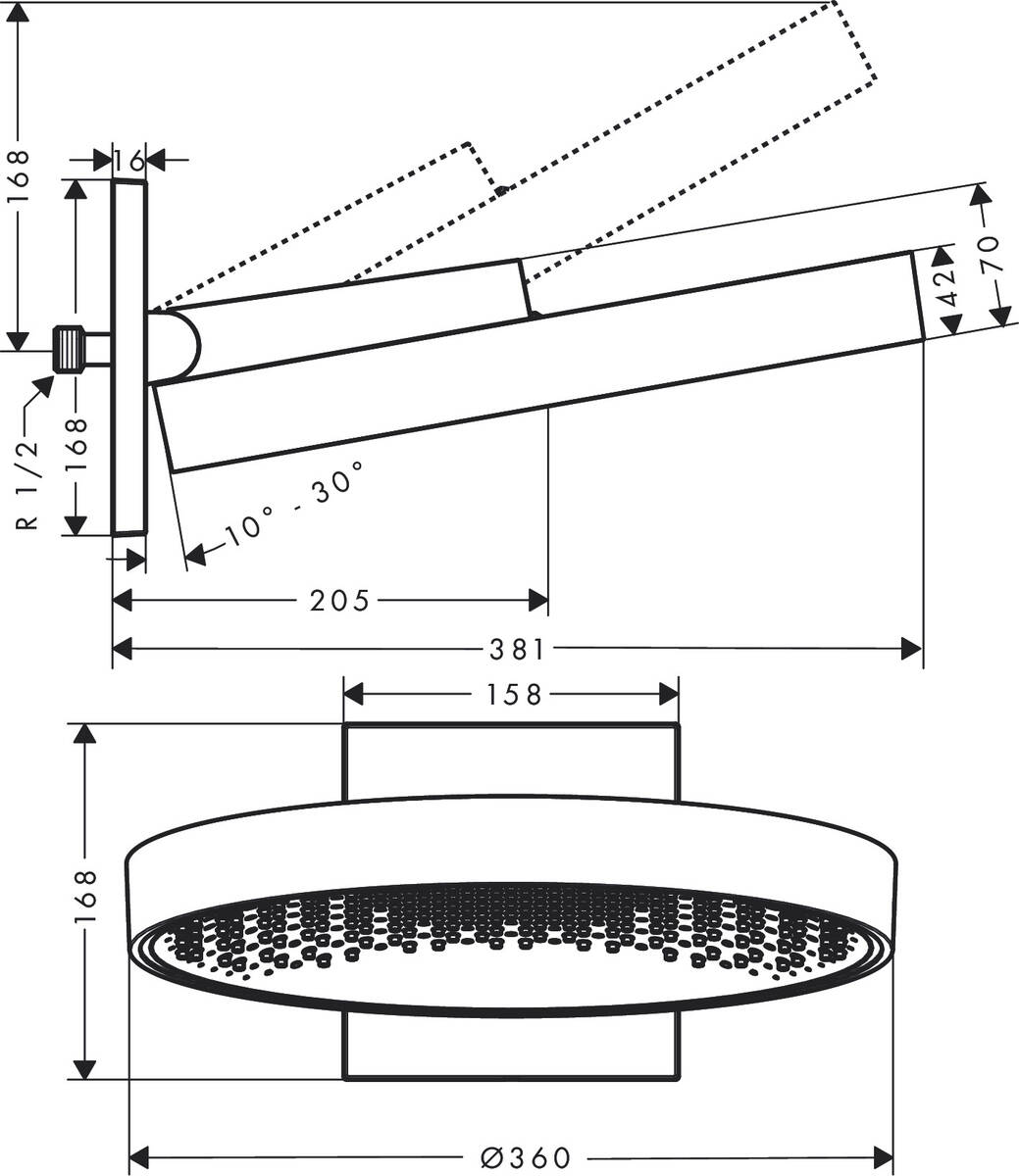 Rainfinity Overhead shower 360 1jet with wall connector.