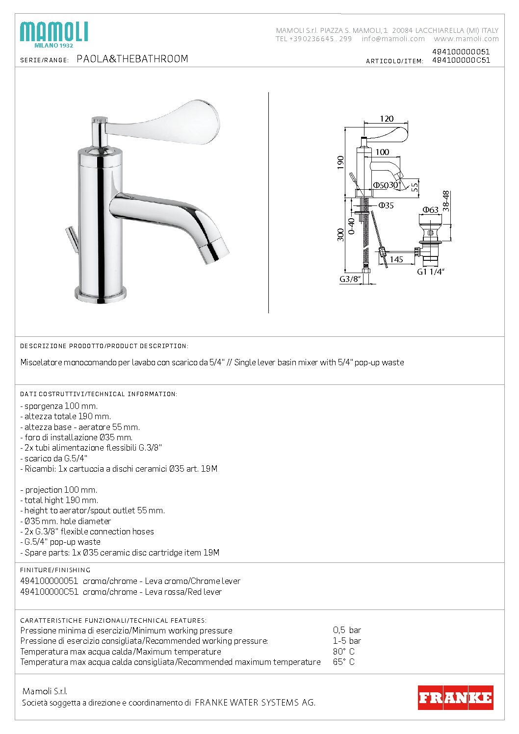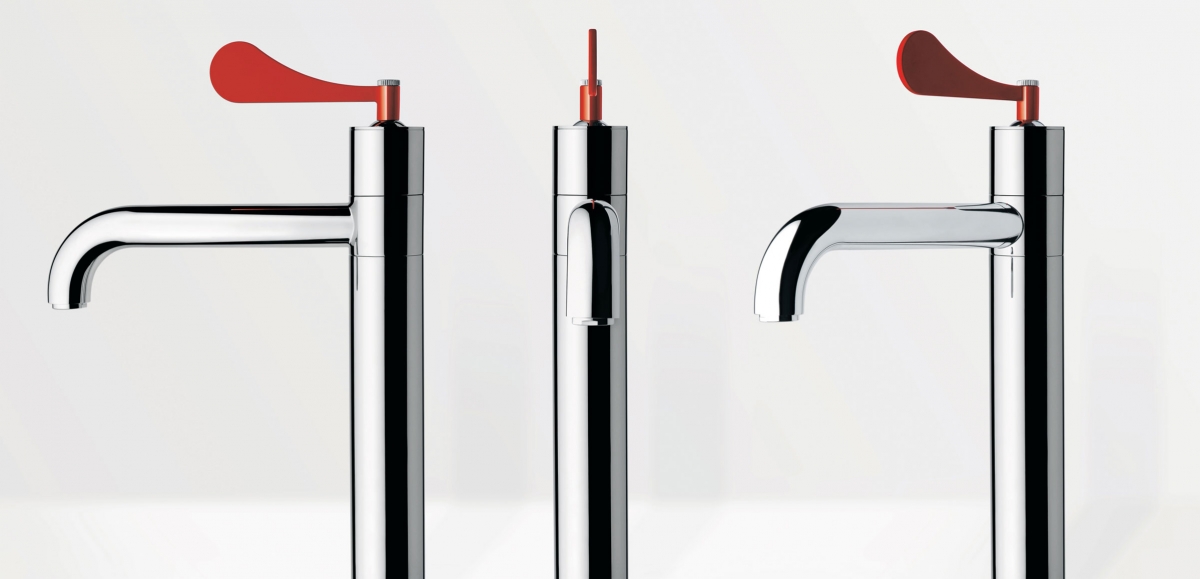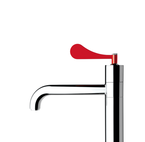 Miscelatore monocomando per lavabo con scarico da 5/4''. Leva rossa.