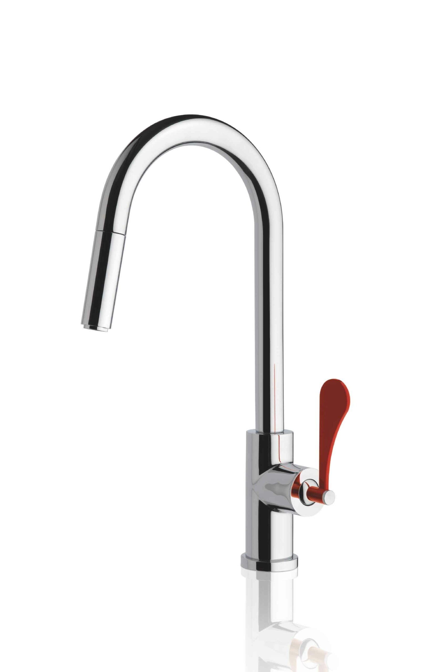 Miscelatore monocomando per lavello. Leva rossa.