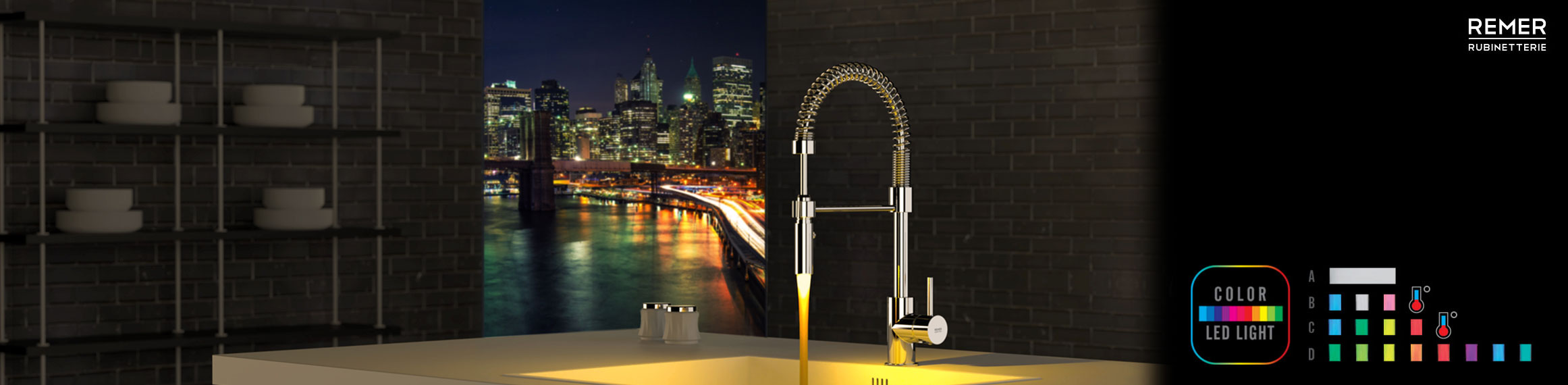Il colore entra nel quotidiano con grande naturalezza grazie alla tecnologia COLOR LED LIGHT, inserita all'interno dei miscelatori, che permette di alimentare la luce led tramite il flusso d’acqua in uscita.