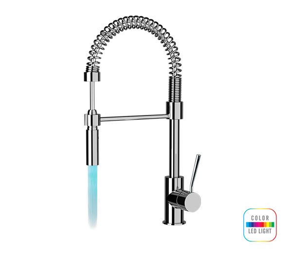 Miscelatore monocomando lavello a molla con dispositivo a luce LED