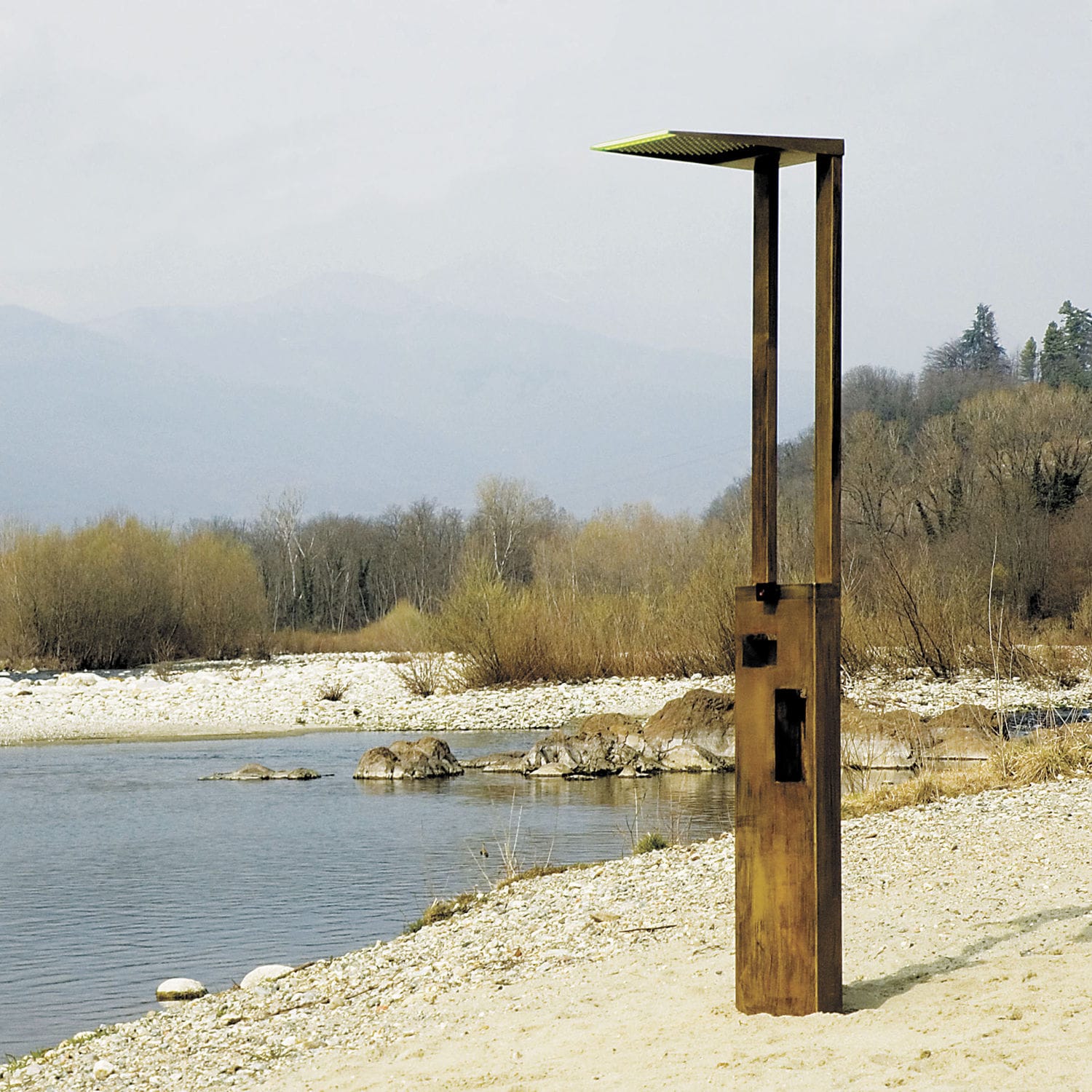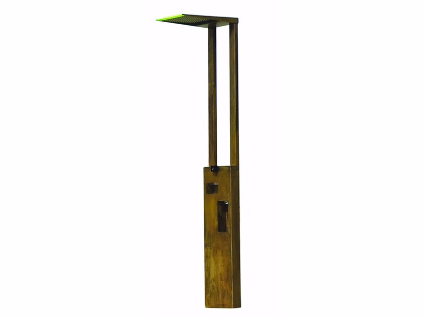 Colonna da terra in finitura "ottone invecchiamento naturale" con soffione anticalcare 500x325mm, doccetta e nicchie portaoggetti.